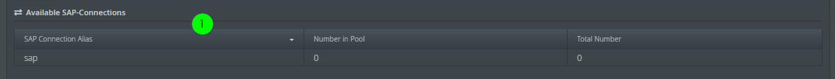 (1) List of all available SAP connections. It shows the alias, the number of connections in the pool (unused), and the total number of active connections.