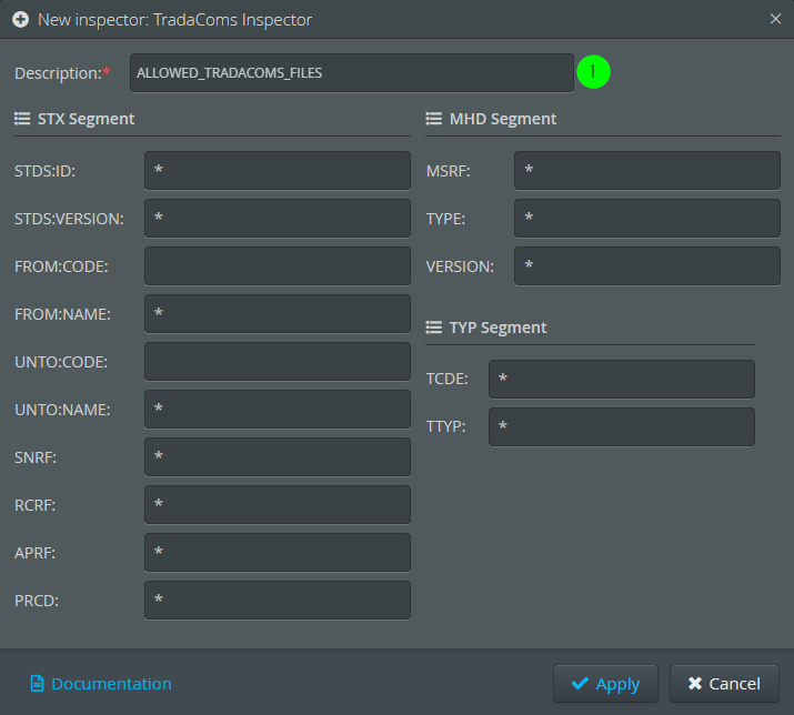 Apart from the description, all other field comparison values are optional. The wildcard * means that all values are allowed.