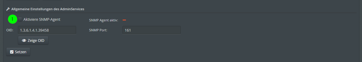 Soll der AdminService Zugriff über einen SNMP-Client erlauben, muss diese Funktionalität entsprechend aktiviert werden. Standardmäßig ist diese Möglichkeit abgeschaltet.