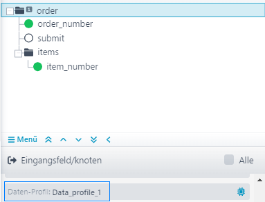 Sehen Sie sich die Eigenschaft Pfad des Zielstruktur-Knotens order_number im Daten-Profil an.