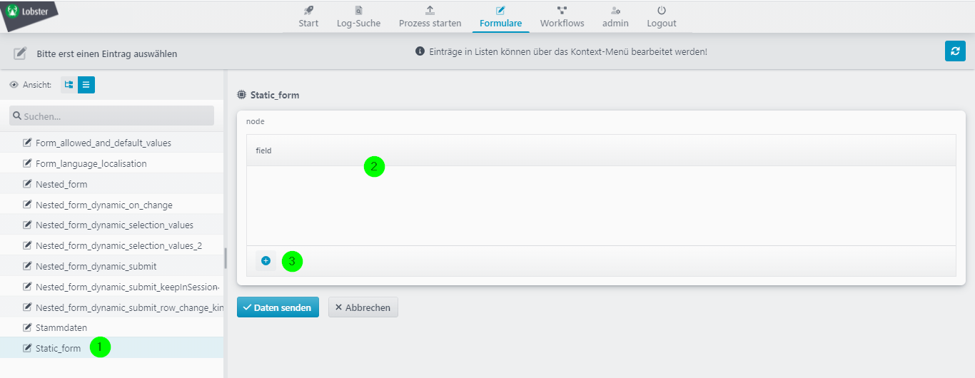 Ihr eingegebener Wert erscheint nun in (6). Die eingegebenen Daten werden zu diesem Zeitpunkt nur "lokal" im Formular gehalten und haben noch keinerlei Wirkung auf das Formular-Profil.