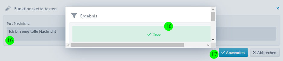 (16) Hier können Sie manuell eine Nachricht eintragen, die für den Test verwendet wird.