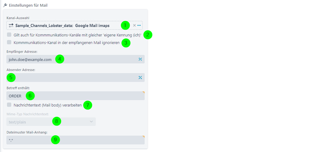 (3) Der Kanal, der der empfangenen E-Mail zugeordnet wird, wird ignoriert, siehe (1) und (2).