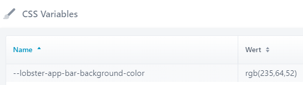 Neben der Darstellungsgröße können hier CSS-Variablen (CSS Custom Properties) gesetzt werden. Dies ist eine Experteneinstellung, für die CSS-Kenntnisse vorausgesetzt werden. Beispielwerte sind im Kontextmenü vorhanden. Beispiel: