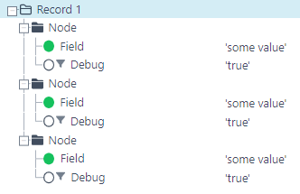 We go through node Node three times in our example. And on field Debug, we execute the following simple function chain.
