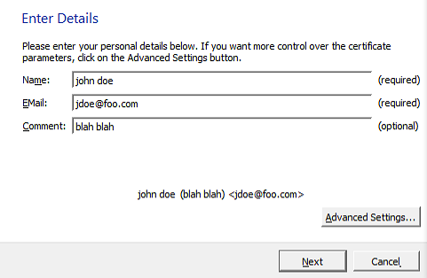 A key pair consists of a private and public key. Click File -> New Certificate...