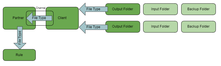 If you have multiple clients, it is theoretically possible to configure the same output folder for different clients. This could lead to a wrong assignment of the virtual file type and thus also to a wrong match of a rule that is not intended for a file! You should therefore always use output folders in such a way that they are assigned to exactly one virtual file type of exactly one client. So if you have two clients and two file types: