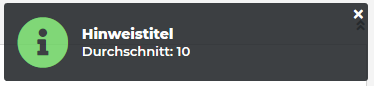 Die Angabe für den Parameter Schließen nach Sekunden betrifft nur Hinweise mit einem Typ aus der Kategorie Notification, da der Typ Alert nicht automatisch geschlossen wird.