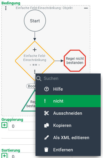 Wenn dem Kennzeichen "nicht" (not) der Boolean-Wert true zugewiesen ist, wird der Rückgabewert aus der Verknüpfung "verneint".