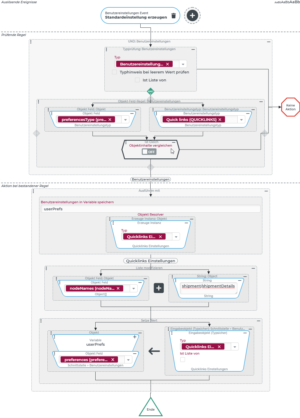 Das Eingabeobjekt für das Ereignis ist ein neues Benutzereinstellungsobjekt (core:UserPreferences) mit entsprechend korrekt gefüllten Feldern.