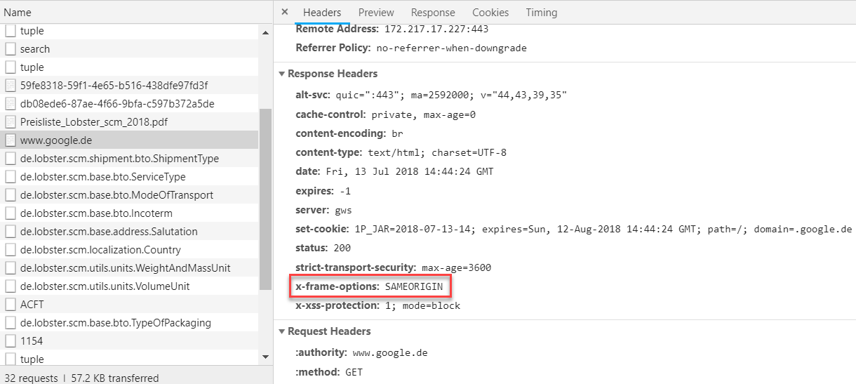 Alternativ kann der Wert SAMEORIGIN verwendet werden, wenn die Nutzung innerhalb der gleichen Ursprungswebseite erlaubt sein soll.