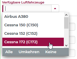 Außerdem stellt die Auswahlleiste im Dropdown die in unten beschriebenen Komfortfunktionen für Mehrfachoperationen zum Aus- und Abwählen bereit.
