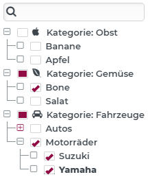 Unter der Haube der Baumkomponente verbirgt sich das Datenmodell einer Multi-Combobox (Siehe auch Kapitel Listenelemente für Details zu Services). Dabei sind die Baumknoten als Eintrag-Pool und "angekreuzte" Knoten als die "Werte" des Baumes zu verstehen.