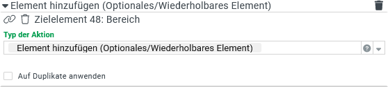 Die Aktion erscheint nur zur Auswahl unter Typ der Aktion, wenn vorher ein geeignetes Zielelement verknüpft wurde. Details werden in eigenen Abschnitten je Containertyp (unten) beschrieben.