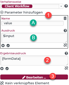 Weitere Parameter können analog hinzugefügt werden, um per Ausdruck (s. Berechnungsausdruck) Ereignisvariablen mit demselben Namen für den Workflow zu befüllen.