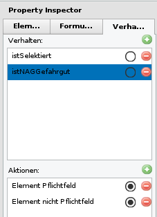 5. Aktionen für das erstellte Verhalten istNAGGefahrgut reagieren entsprechend auf wahr (N.A.G.) oder unwahr (kein N.A.G.)