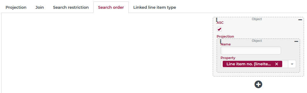 No settings for Join, Search restriction and Search order were applied here. These settings can be applied as pointed out with respect to the 'Linked line item' in the following.