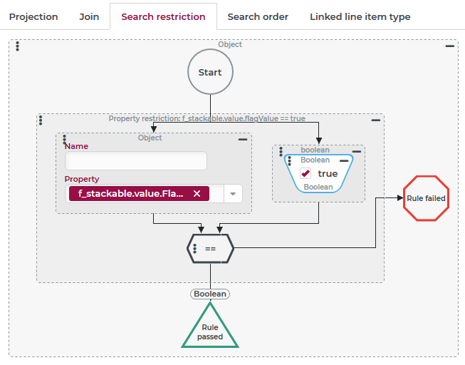 As a variation of the unrestricted initial example, a restriction has been added here, which limits the selection to line items flagged as Stackable.