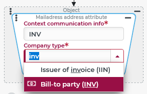 ►NOTE◄ Possibly the same attribute refers to a company account (company field) instead. Evaluation of the company address (company.address) then enables the Company Attribute Mail Adress value resolver.The address does not have a communication information attribute that fulfills all of the following conditions: