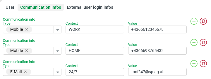 • The concatenated Plural attributes (Resolver) provides a list of all instances for the attribute type ‘Communication info’.