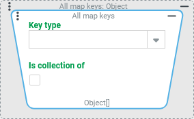 ►IMPORTANT◄ Unlike many other value resolvers that offer a 'type' selection in conjunction with an Is collection of option, the 'All map keys' value resolver ignores the selection for the Key type when the Is collection of option is checked. Therefore, by combining the two parameters, it is not possible to specify that all key values must be of a certain type. Nevertheless, for the context of the configuration, the return value is declared accordingly, e.g. Long[][], i.e. a list of key values which in turn list Long values. An individual 'check' per key value – i.e. a check whether its entries correspond to the Key type – does not take place.