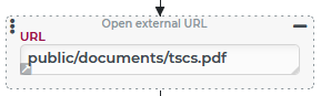The Open external URL event action opens a URL on the current client in a new browser tab.
