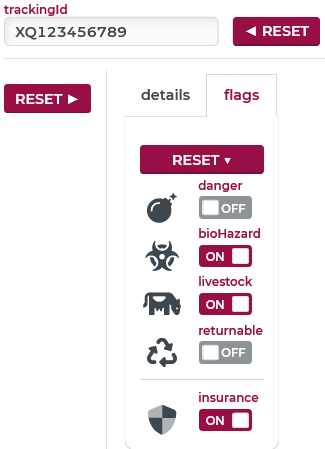 Clicking the RESET Button in the flags tab will exclusively reset the data in the "flags" field, while the data in the "details" field and the trackingId will be preserved.