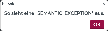 Die Fehlermeldung wird als Hinweis-Dialog angezeigt, der per Klick auf den Button "OK" oder das "X"-Symbol rechts oben geschlossen werden kann. |
