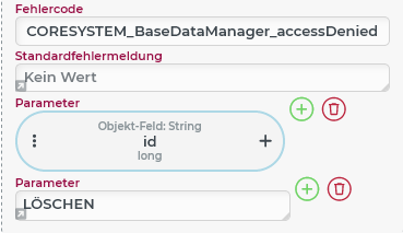 Sind im Wertauflöser Parameter konfiguriert, werden diese ggf. auf Platzhalter im Lokalisierungstext für den Fehlercode abgebildet.