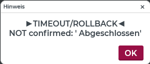 Wird als Rückmeldung eine Notification eines beliebigen Typs angezeigt, öffnet ein Mausklick auf die Benachrichtigung die Fehlermeldung als Dialog wie beim Fehlertyp "Process Exception".