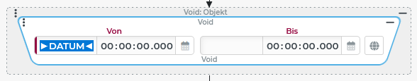 Analog zum Datumsbereich-Element sind für den Von- und Bis-Zeitpunkt Eingaben bzw. Auswahlen für die Komponenten Tag, Monat, Jahr, Stunde, Minute, Sekunde, Millisekunde möglich.