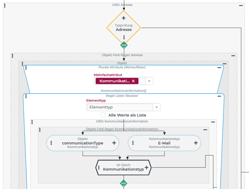 Der Plurale Attribute (Wertauflöser)-Wertauflöser ermöglicht den Zugriff auf ein "Mehrfachattribut" einer Entität. Er erwartet als Bezugsobjekt eine Entität, die dem Typ nach als "Attributsbesitzer" gilt (s. Attribut (Wertauflöser)) und dessen Datenmodell mindestens ein "Mehrfachattribut" vorsieht. Der Rückgabewert ist eine Liste von Einzelwerten, die auch leer sein kann. Für gezielte Schreib- und Lesezugriffe (s. "Beispiele") können die für Listen spezifischen Wertauflöser (z. B. Listenwert, Regel-Listen Resolver) und Ereignisaktionen (z. B. Für jeden Eintrag wiederholen (Schleife), Liste modifizieren) eingesetzt werden.