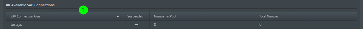(1) List of all available SAP connections. It shows the alias, whether the connection is suspended (4), the number of connections in the pool (unused), and the total number of active connections.
