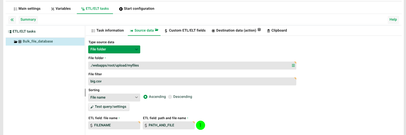 Then we create a new ETL/ELT task (2) with the name my_task_1 and jump directly into the source data (3) and set it to type CSV/Text.