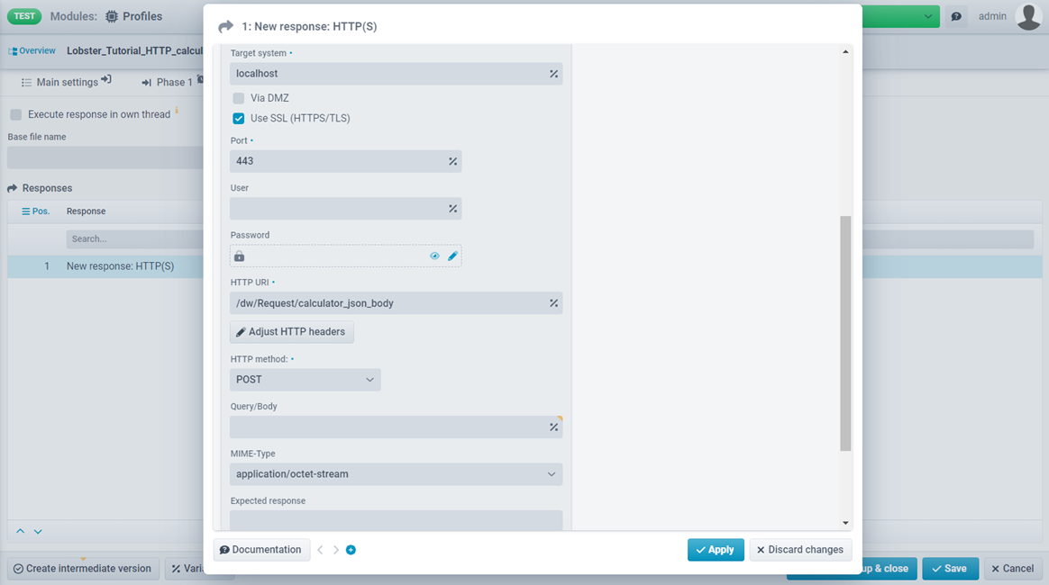 Give the profile a meaningful name, e.g. Lobster_Tutorial_HTTP_calculator_call_json.