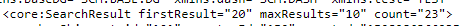 The total number of rows is not determined. 3 rows (rows 20 to 22) are returned. The 'count' attribute indicates the number of returned rows (3). |