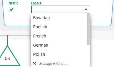 If the Static option is checked, then instead of the value resolver configuration for the Locale parameter, a selection box appears that can be used to make a static selection for the Locale.