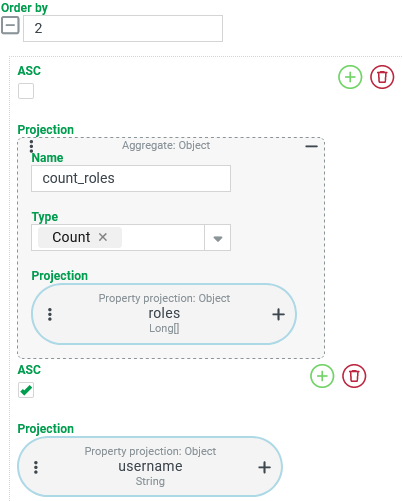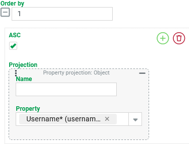 The order of the users 'TEST', 'test' and 'tEST' is no longer determined by the alphanumeric sorting used in the previous runtime example, but by the Long value from the id property. The sorting of 'test2' vs. 'TEST2' is now also based on the id values, even if it has not effectively changed as a result. ►NOTE◄ Without the Aggregate for the first sorting criterion, the sequence would have been the same as in the previous runtime example. The id property would then effectively have no influence because the username strings are all case-sensitive. This is absolutely necessary, not least for use as an identifier when logging in. |