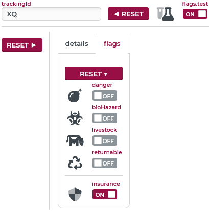 Clicking the RESET Button in the flags tab will exclusively reset the data in the "flags" field, while the data in the "details" field and the trackingId will be preserved.