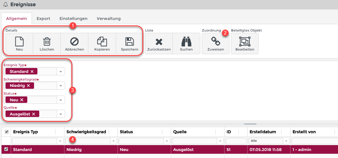 However, SCEM events are not listed in a general way. This is done either by manual entry, by imports or with the help of the SCEM-Aktionen in the configured workflows.
